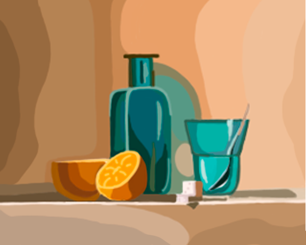 Натюрморт был нарисован в adobe photoshop. В композиции присутствуют мягкие сочетания цветов и ритмическое чередование теней и света.