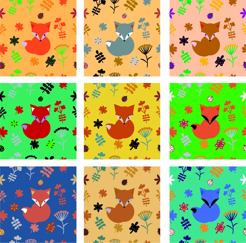 Паттерн с лисой в нескольких цветовых вариантах.