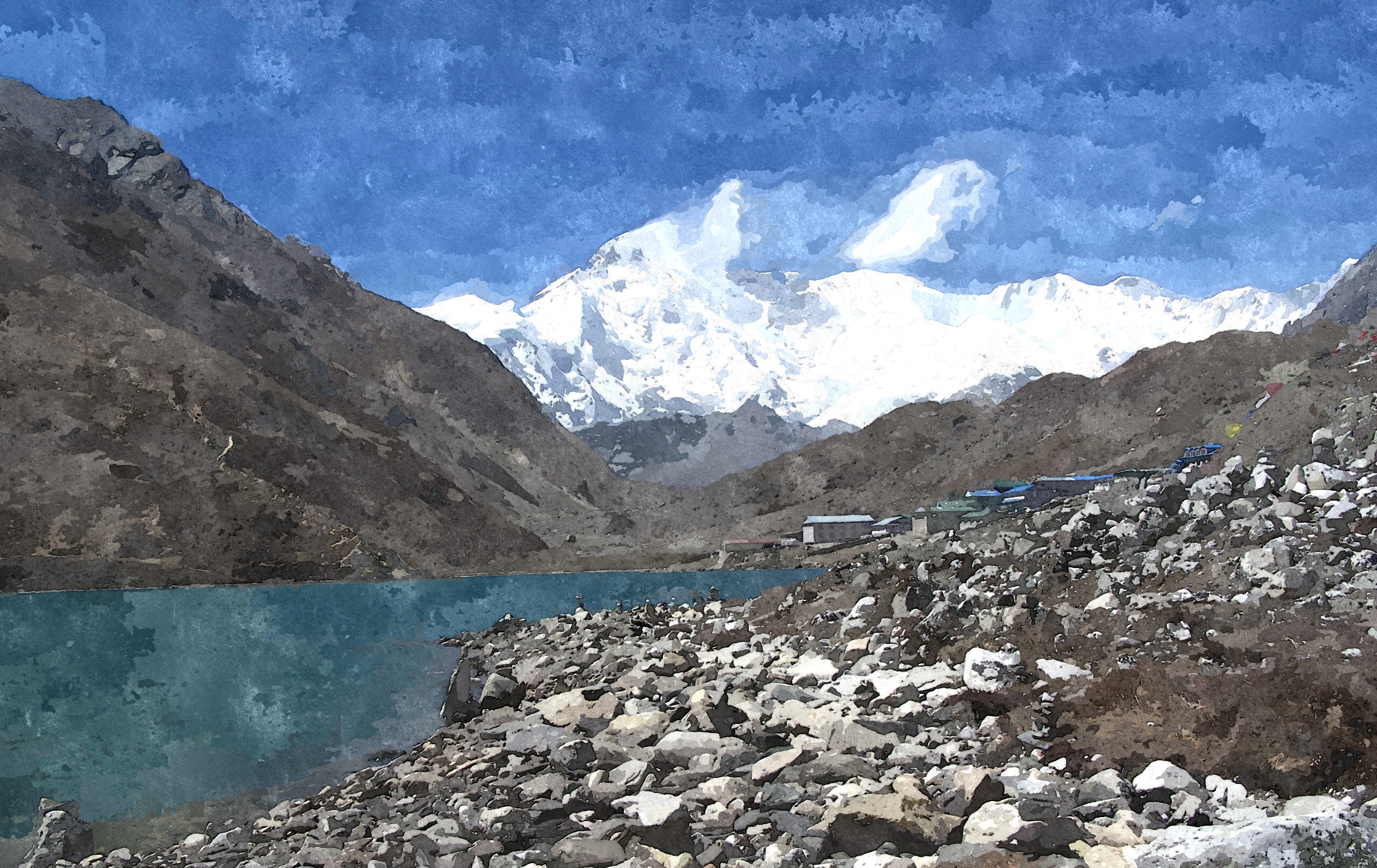 Высокогорное озеро в окружении вулканов.
