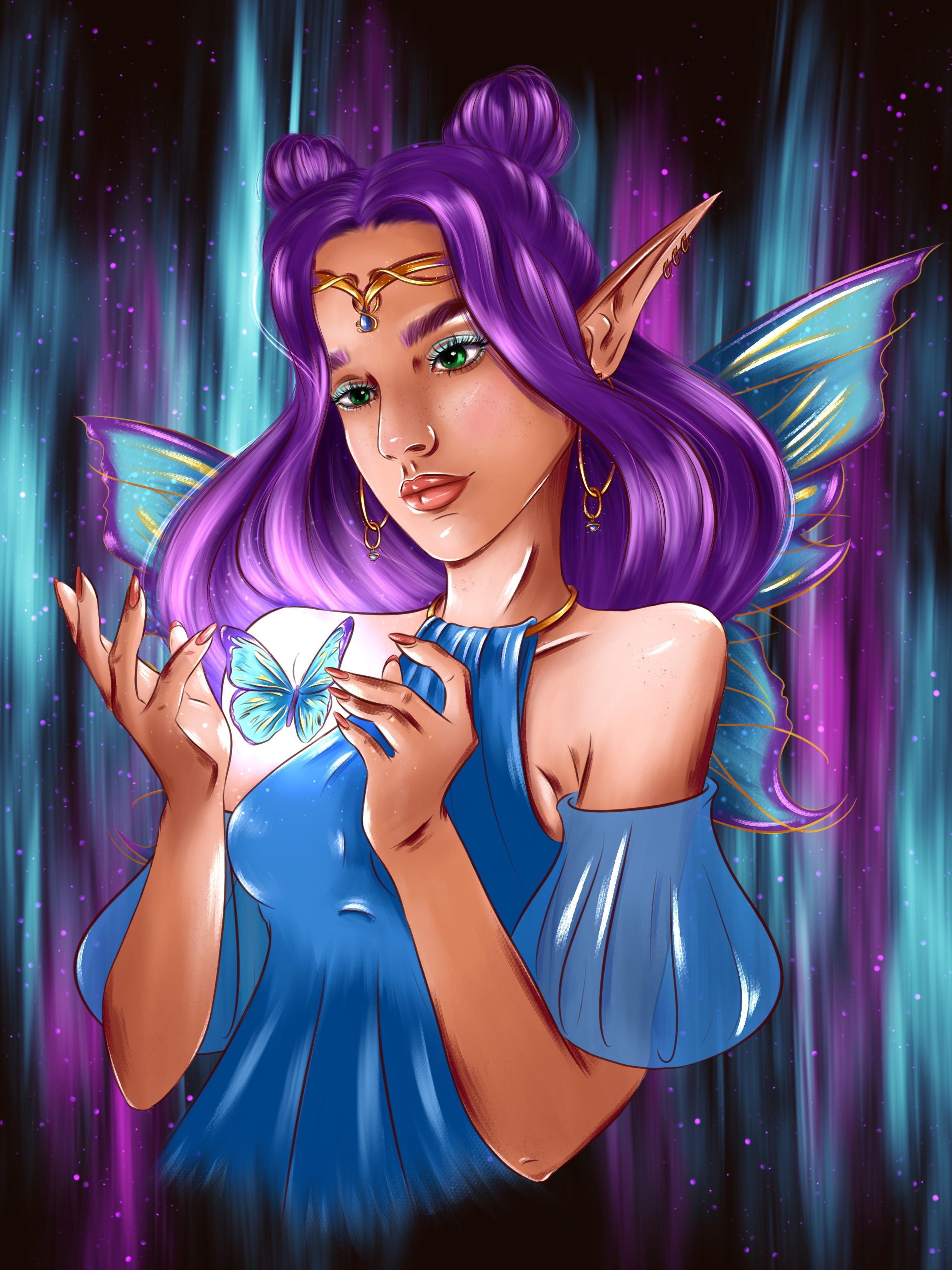 Фея бабочек, такая нежная, милая, хрупкая и ранимая - как и сами прекрасные бабочки. Фея бабочек не только управляет эти красивыми существами, а ещё создаёт им новую окраску.