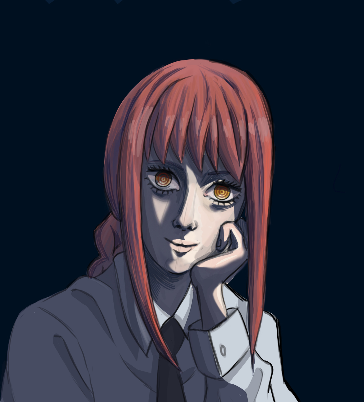 Я была очень вдохновлена аниме человек бензопила и решила изобразить Макиму, так как я ее вижу.