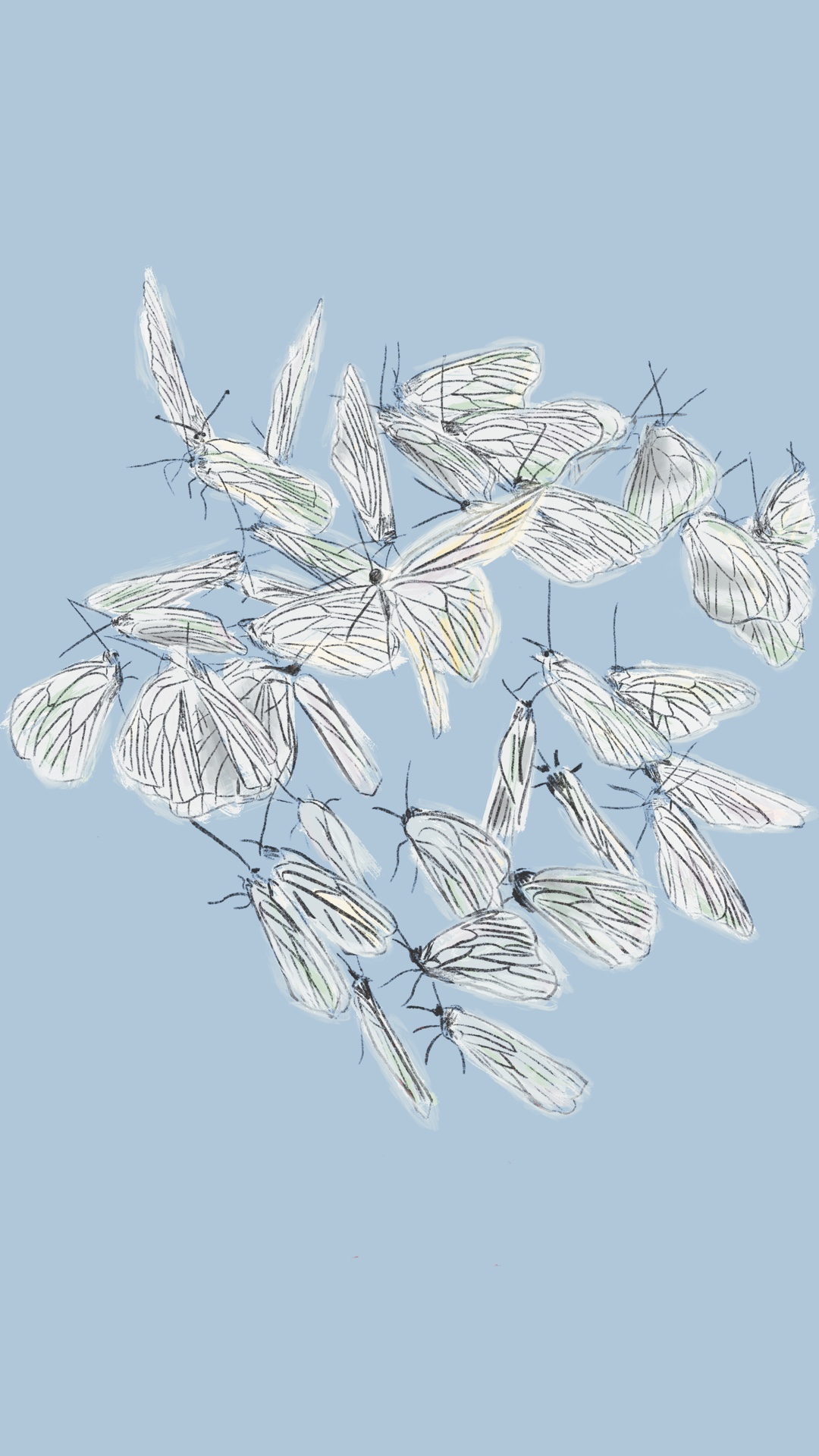 Бабочки.Иллюстрация выполнена в минималистичном стиле.Разноцветные бабочки с узорами на крыльях.Они то складывают крылья, то расправляют их, словно танцуют в воздухе, добавляя динамики и грации.Идеальная иллюстрация для постера или открытки.