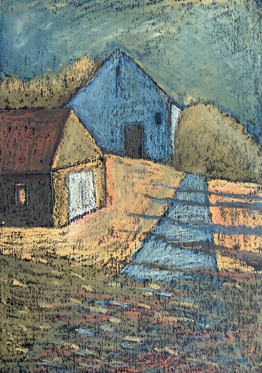 Осеннее утро, 2021г., 210х297мм, масляная пастель, картон.