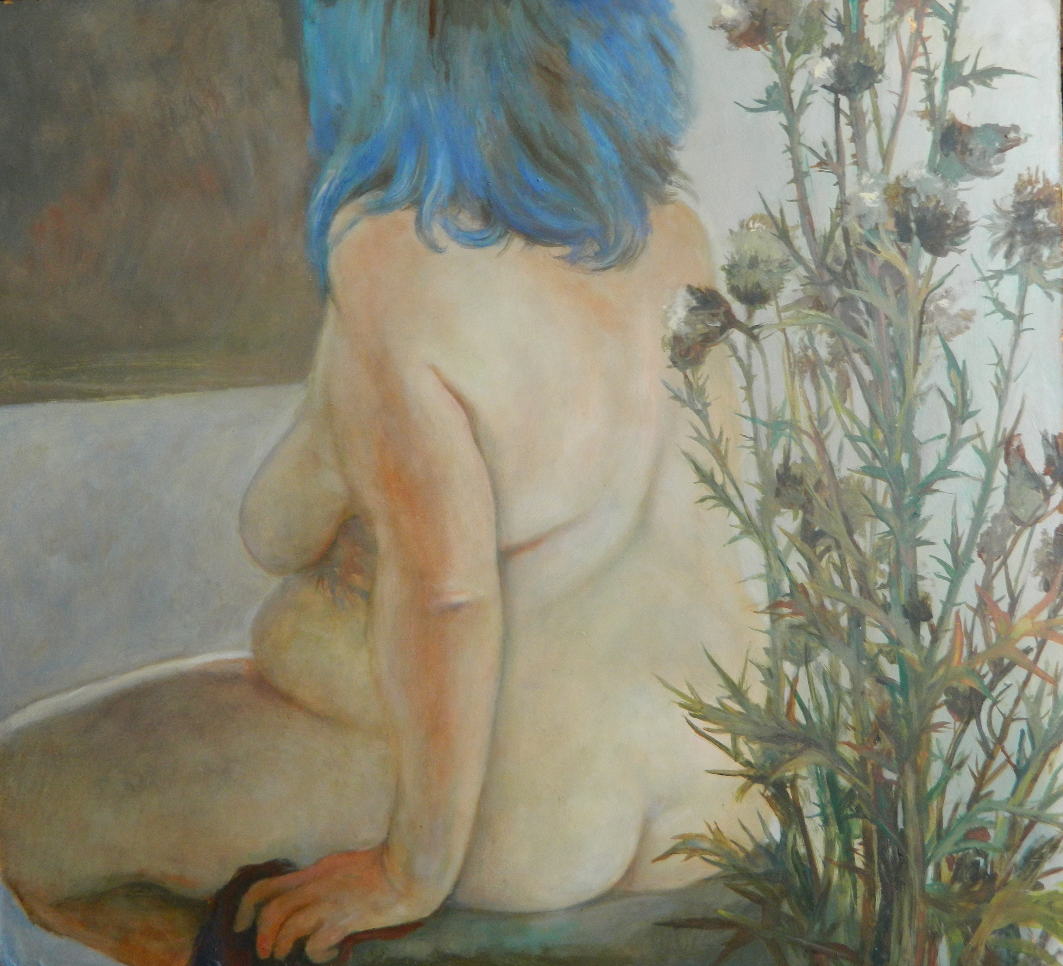 картина «Колючка» 55*50 оргалит, масло. 2019г. участвовала в выставке.