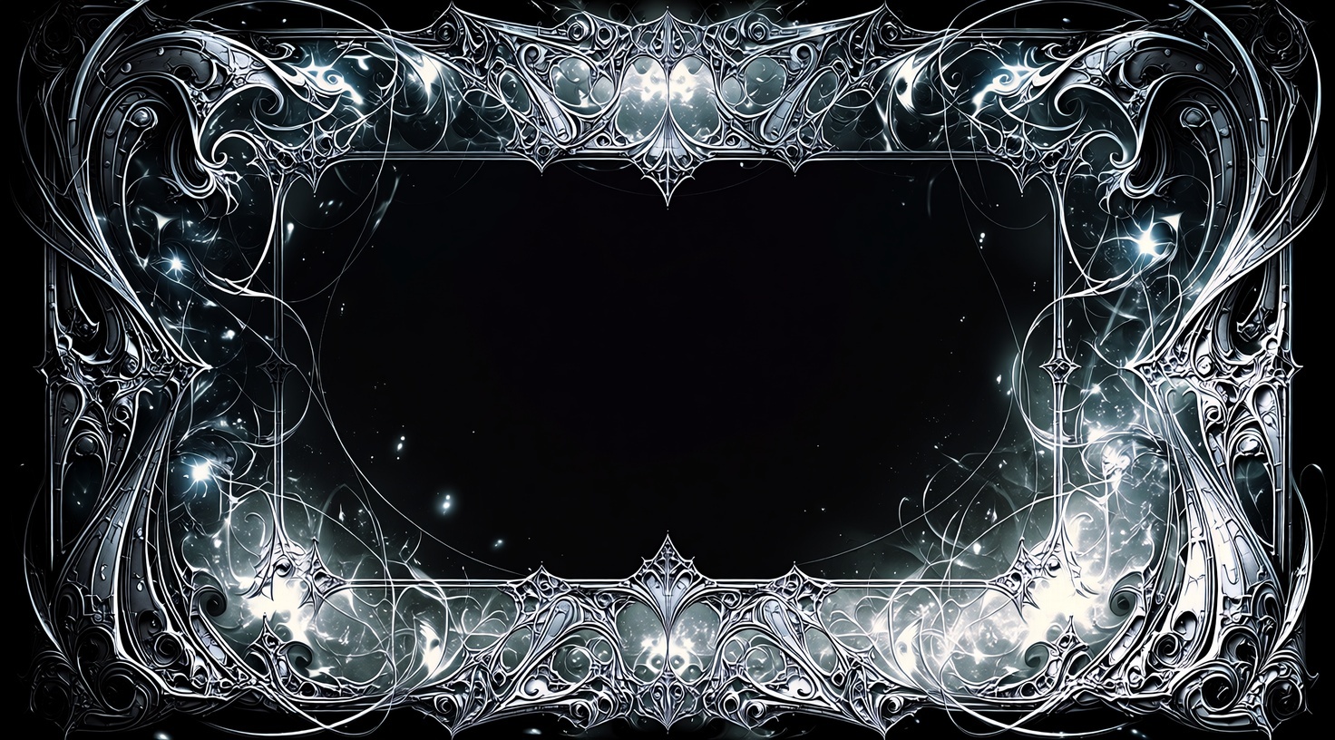 Рамка для текста на чёрном фоне с эльфийским узором в png качество файла 4к. По запросу могу перевести в вектор (работаю с иллюстратором). Нейроарт.