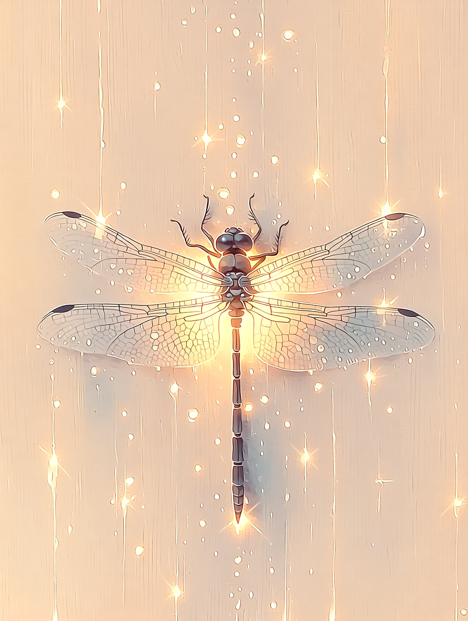 Изображение стрекозы на светлом фоне с каплями дождя. Соотношение сторон 3 к 4. Базовое качество 1 к. при необходимости подниму до 4 к. Нейроарт