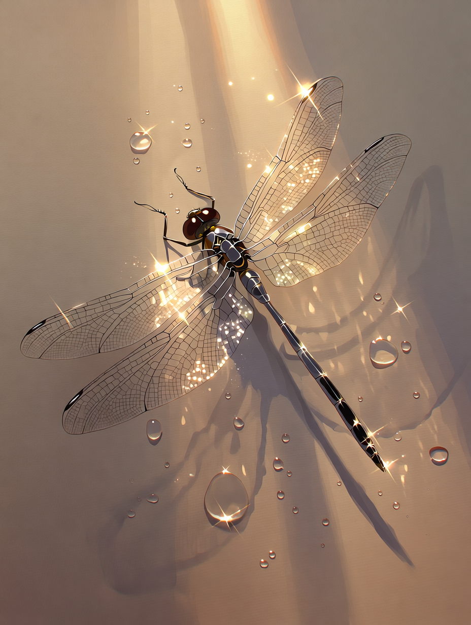 Изображение стрекозы на светлом фоне с каплями дождя. Соотношение сторон 3 к 4. Базовое качество 1 к. при необходимости подниму до 4 к. Нейроарт