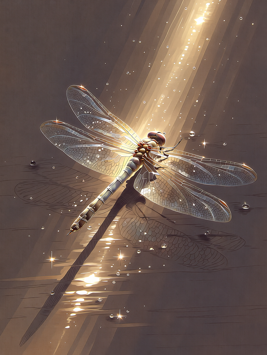 Изображение стрекозы на сером фоне с каплями дождя. Соотношение сторон 3 к 4. Базовое качество 1 к. при необходимости подниму до 4 к. Нейроарт
