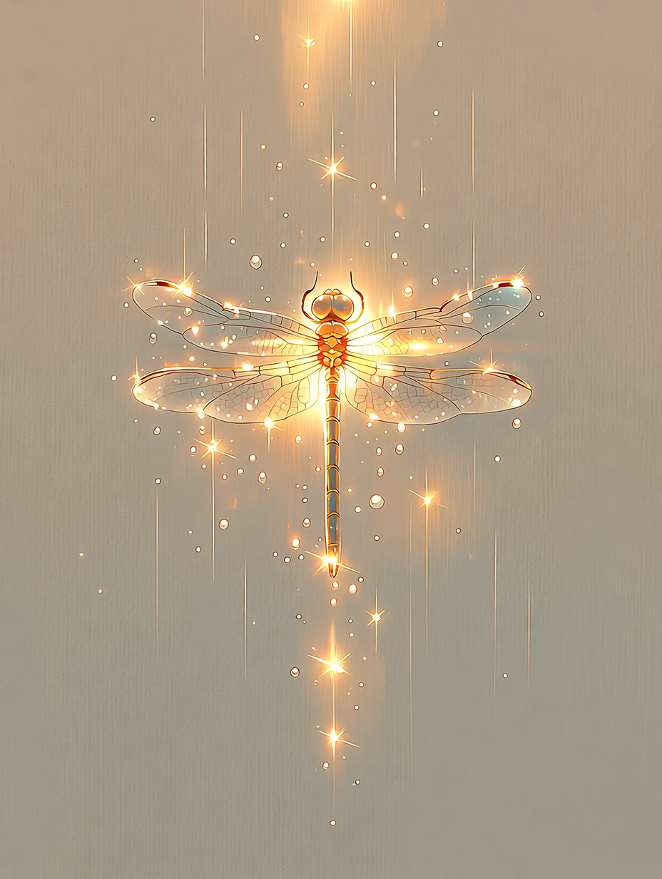 Изображение стрекозы в лучах солнца на светло сером фоне с каплями дождя. Соотношение сторон 3 к 4. Базовое качество 1 к. при необходимости подниму до 4 к. Нейроарт