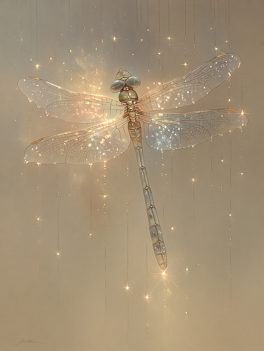 Изображение стрекозы на светлом фоне с каплями дождя. Соотношение сторон 3 к 4. Базовое качество 1 к. при необходимости подниму до 4 к. Нейроарт