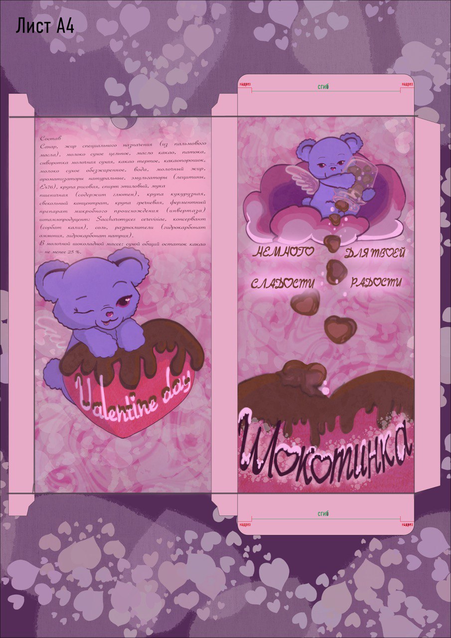 Развертка упаковка шоколадки на праздник. Не обязательно день валентина, можно на любой другой праздник. Возможна упаковка не только праздничная, но и обычная