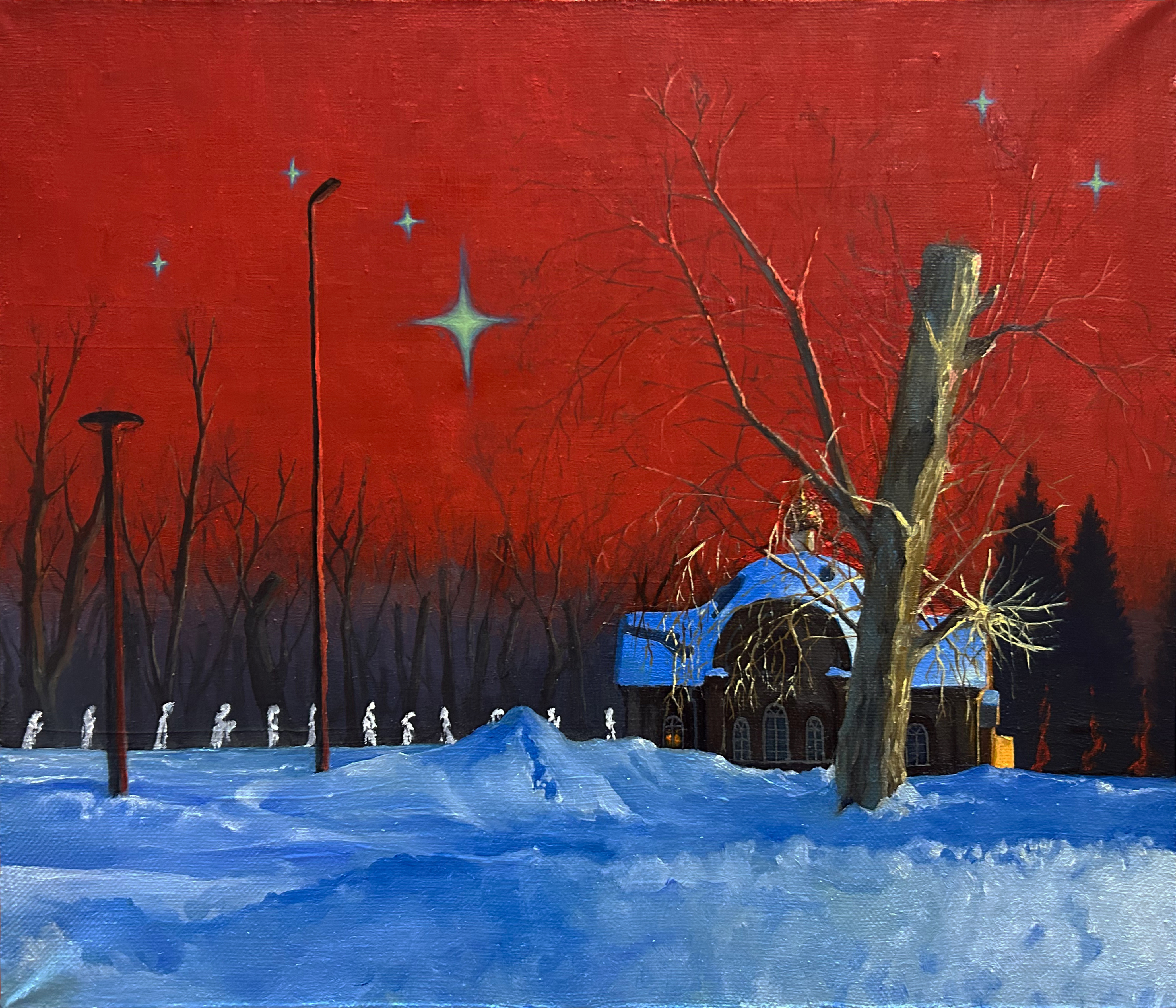 Картина являет собой авторское видение Кресто-Воздвиженской церкви, расположенной в парке "Изумрудный", ранее являющимся кладбищем . В советский период церковь служила планетарием, а с конца 2019 года была возвращена Русской Православной Церкви, после чего над зданием начался процесс полной реставрации.