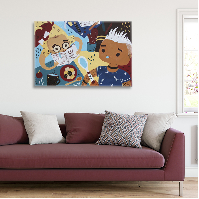 Иллюстрация на холсте с прописью боковых сторон.