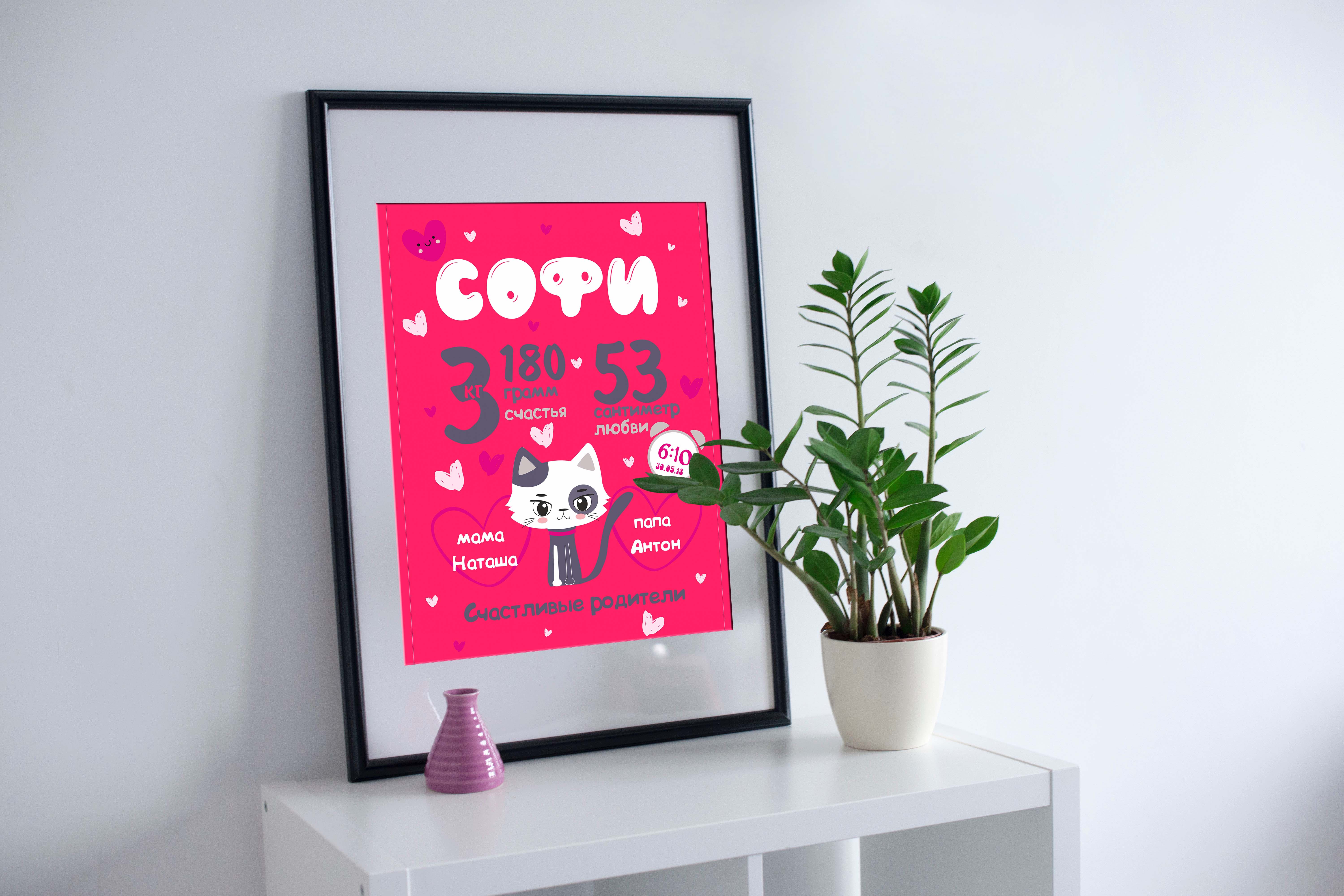 Детская метрика – это аксессуар, сочетающий в себе самые важные данные о новорожденном. В метрике отображаются рост, вес, имя малыша, дата и время появления его на свет. Это своего рода оригинальное свидетельство о рождении, которое станет прекрасным предметом декора детской комнаты.