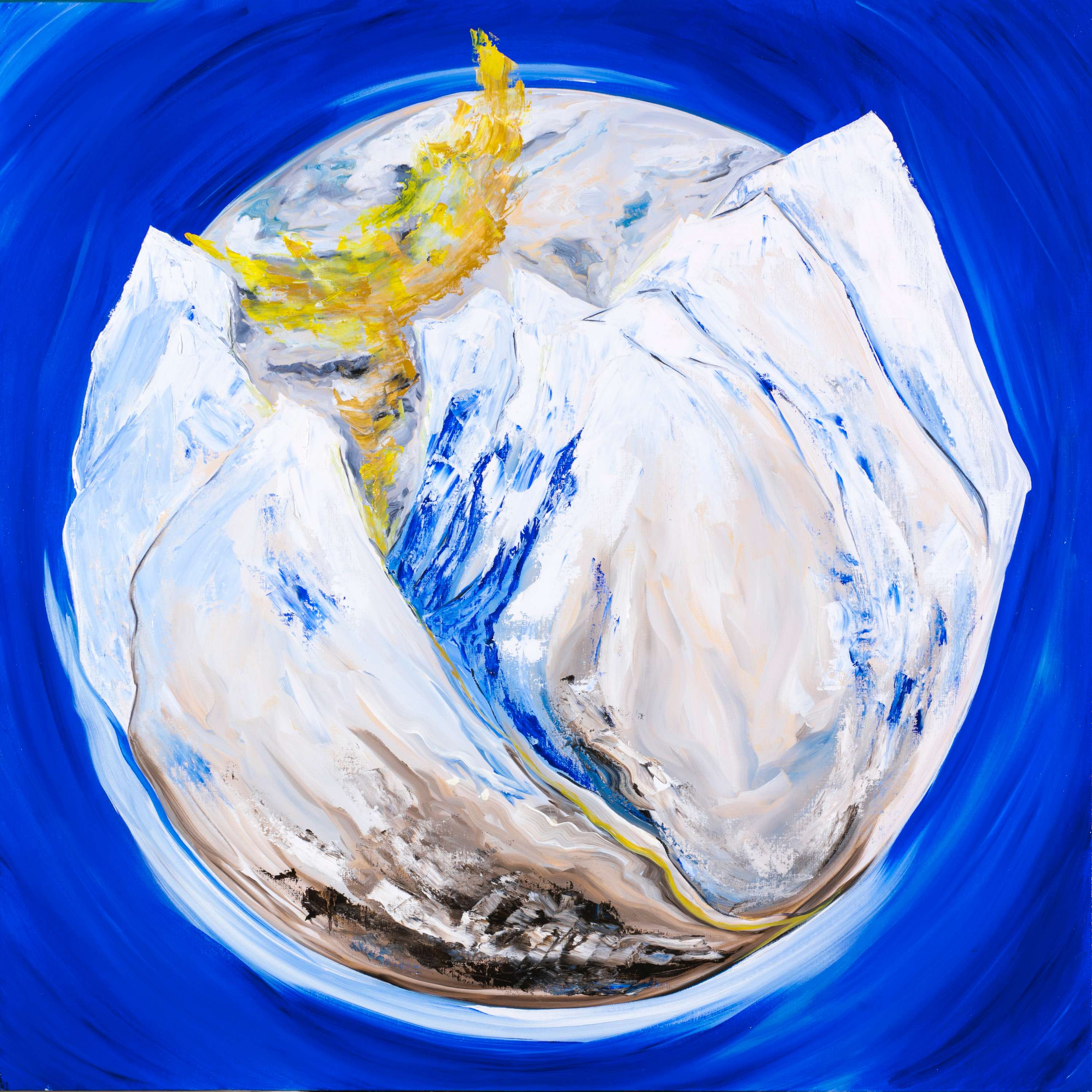Холст, масло, 100\100. Работа принадлежит циклу "Наедине с миром". Простор и свобода присущи каждому из нас. Почувствуй вкус полета. Высота. Когда есть ты и есть мир. И ты один. Наедине, на самой вершине своего собственного мира.