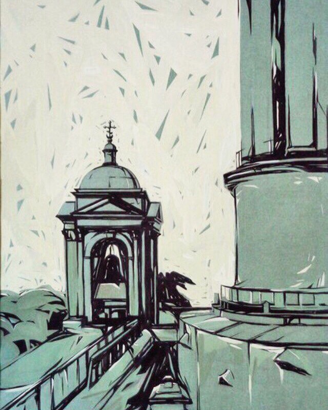 Фрагмент Исаакиевского собора. Использовала тонированную бумагу и гуашь. Размер А3. Оригинал. Отправляется почтой,возможно оформление по вашему желанию