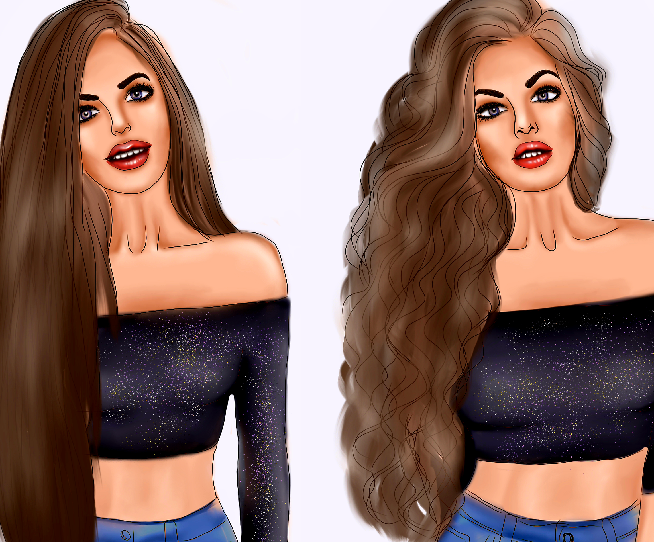 Две девушки, одна с прямыми волосами а другая с локонами.
