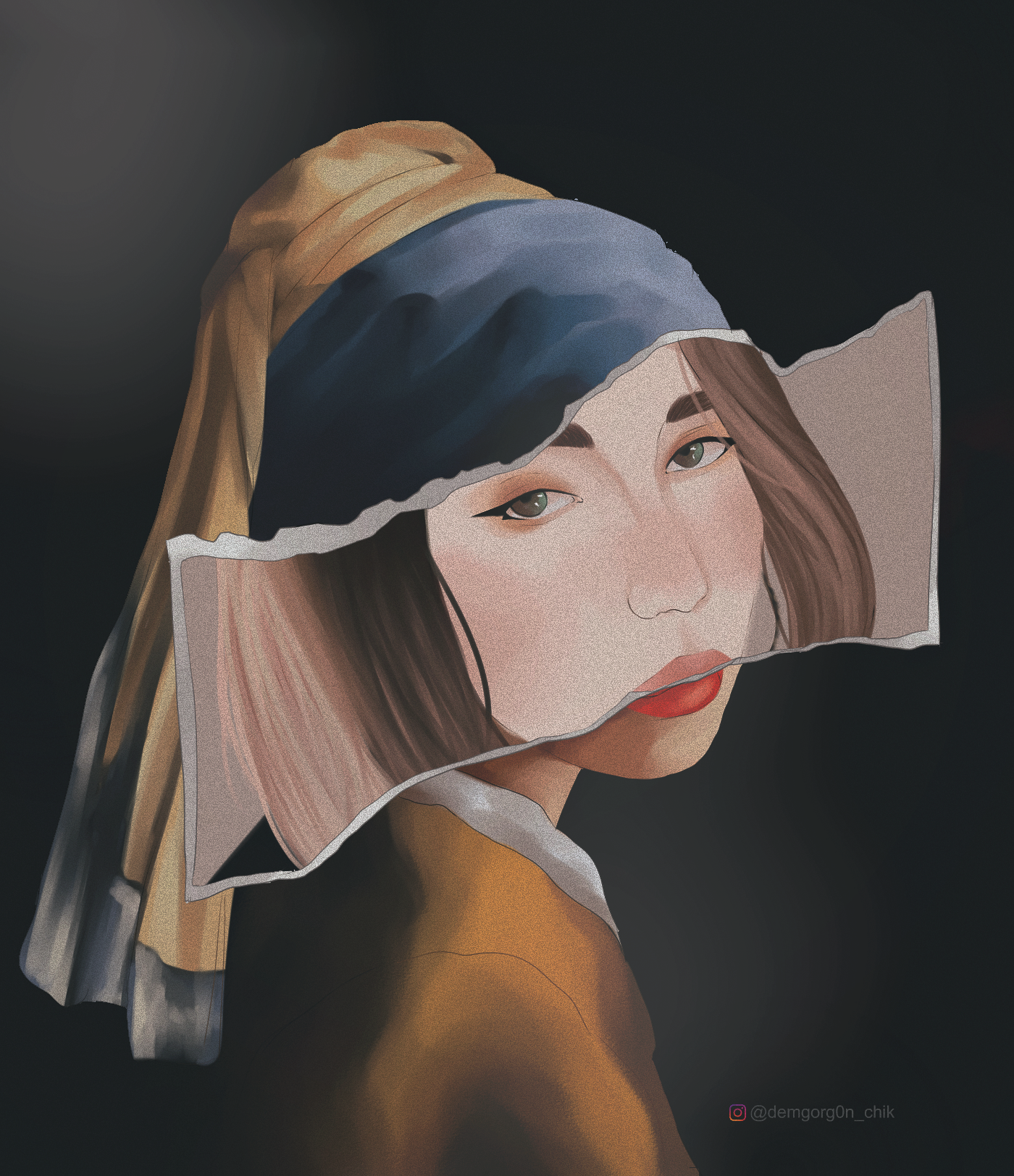 Все мы знаем эту известную картину, девушки с серёжкой, а что если перерисовать её немного по другому?