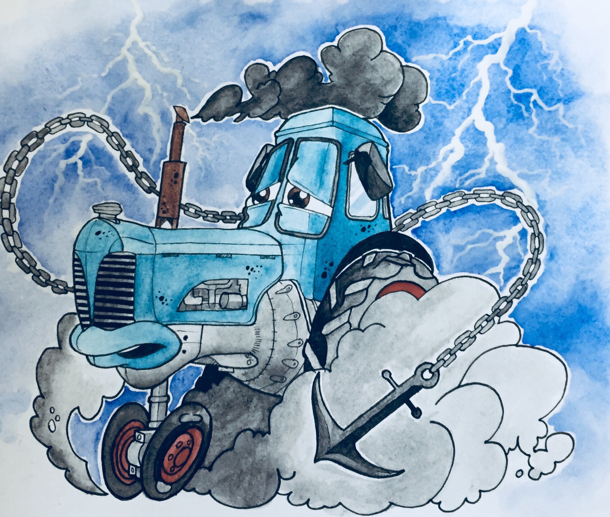 Акварельный рисунок с контуром выполненным линером