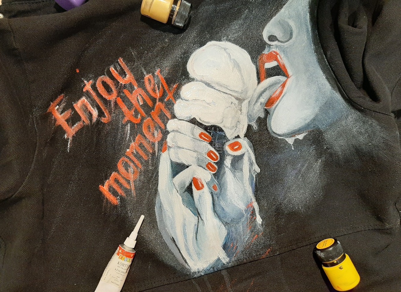 Я занимаюсь росписью одежды акриловыми красками.👩🎨Вы сами решаете какой именно дизайн будет у ваших вещей,а я гарантирую, что он будет уникальным, так же могу помочь с выбором)👩🎨