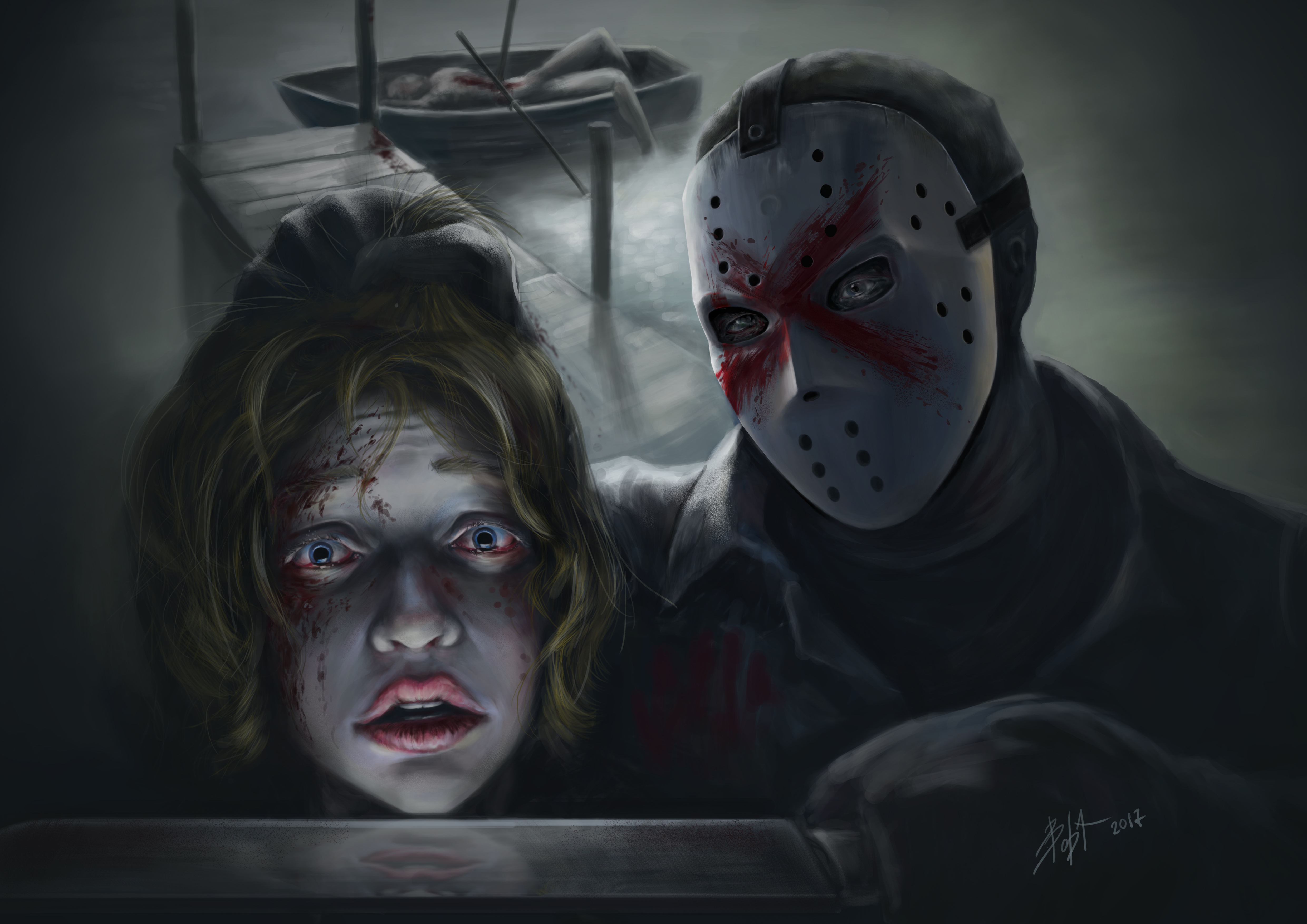 выдуманный сюжет, все образы вымышленные, все совпадения всего лишь совпадения и не чего более). на картинке изображен добродушный парень по профессии маляр, встретив по дороге домой девушку случайно пролил на нее краску. в отражение своего канцелярского ножа он показывает на каких участках лица следы краски, от чего девушка впадает в шок.