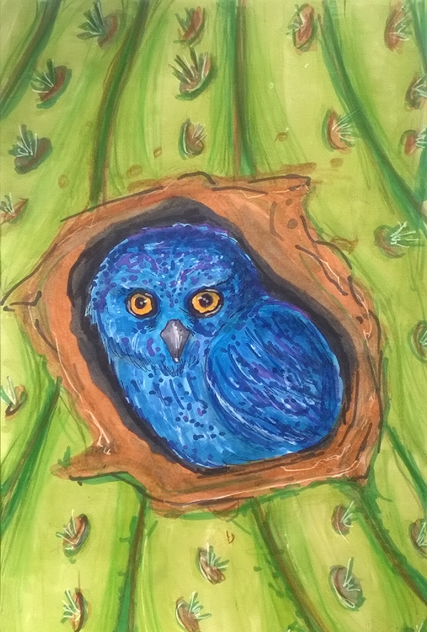 Маленький сыч... Илююстрация для детской книги. Эту работу рисовала для участия в марафоне, позже решила опубликовать этот рисунок и на этом сайте.