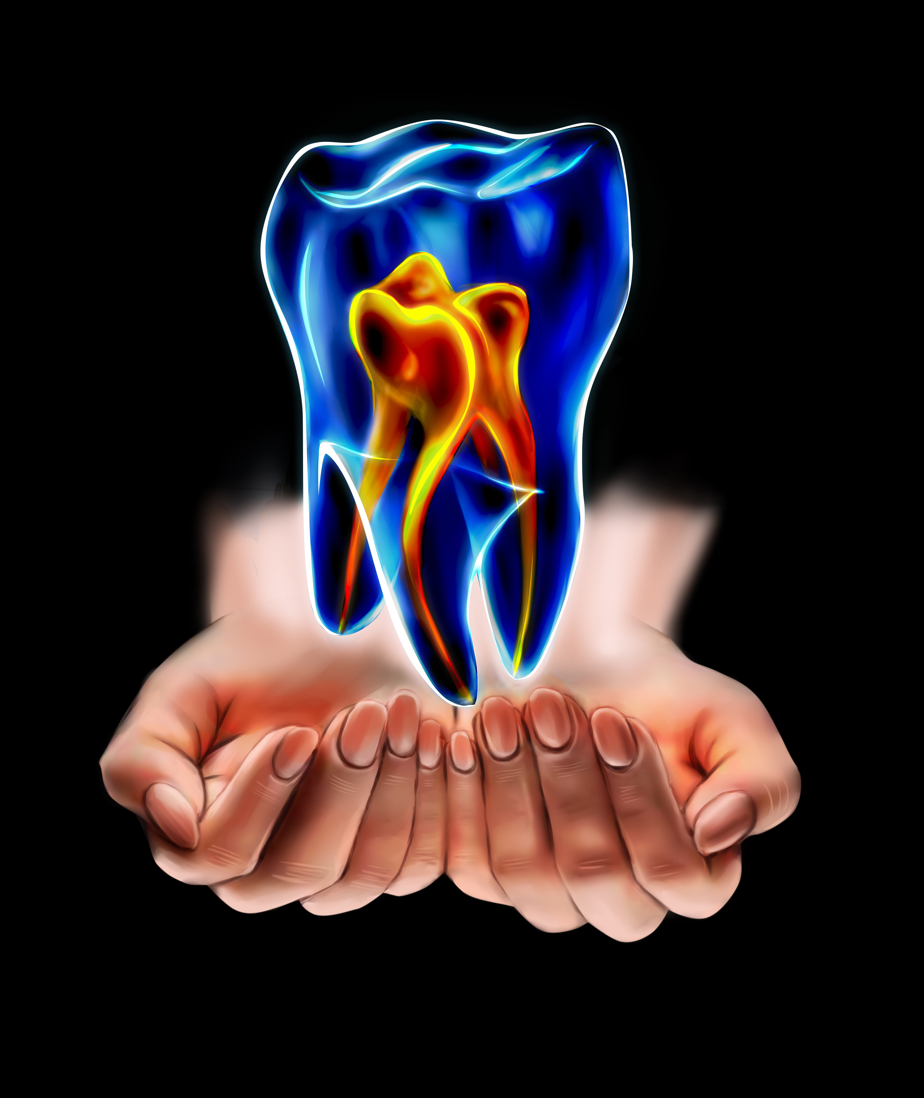 Рентген зуба в руках - руки отдельным слоем, зуб - отдельным. Идеален для рекламных материалов стоматологий. Файл размером а3, разрешение 300 dpi