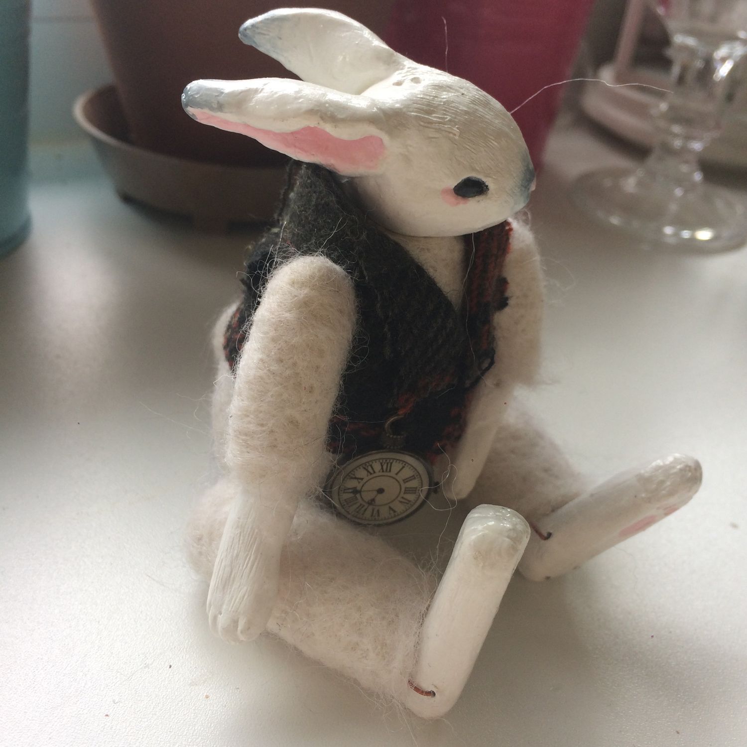 Игрушка в смешанной технике (валяная из шерсти+полимерная глина), размер 13 см. Подвижные суставы, ручная работа. Ищет любящие и заботливые ручки.