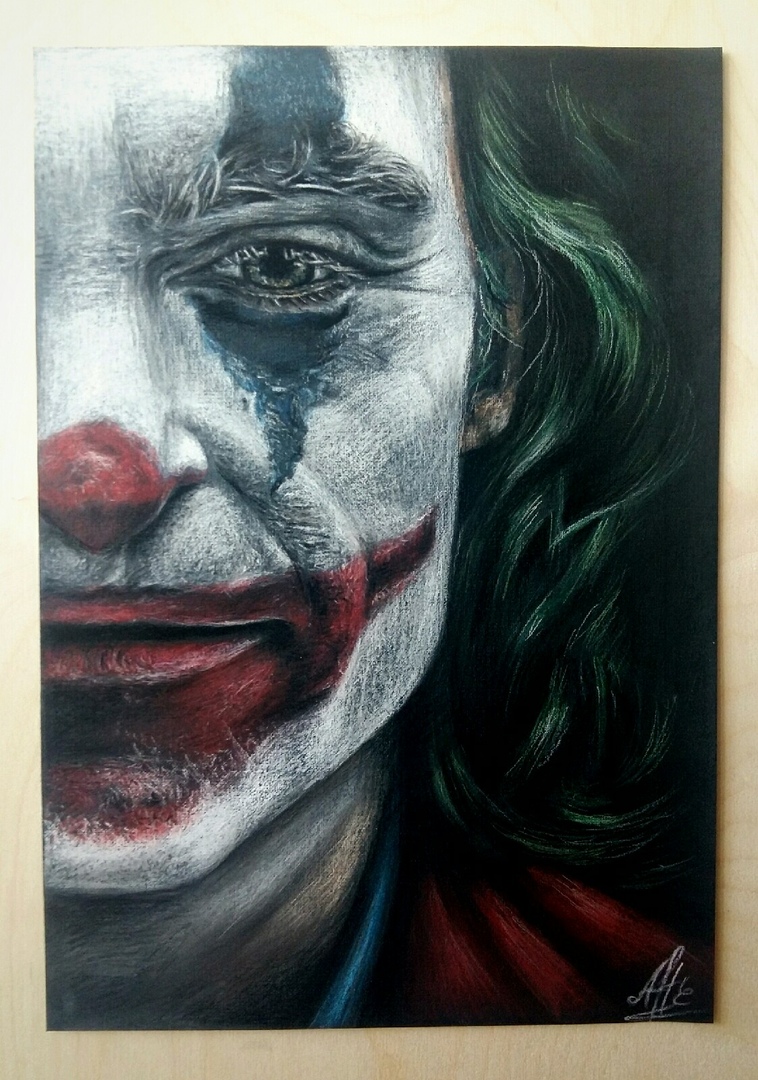 В данном изображении представлен Джокер из фильма 2019 года. Работа выполнена в мягких материалах (пастель). Размер 36*25. Отличный подарок для любителей вселенной ДС. Нахожусь в Питере ( могу отправить в любой город ). При желании можно подобрать рамку.
