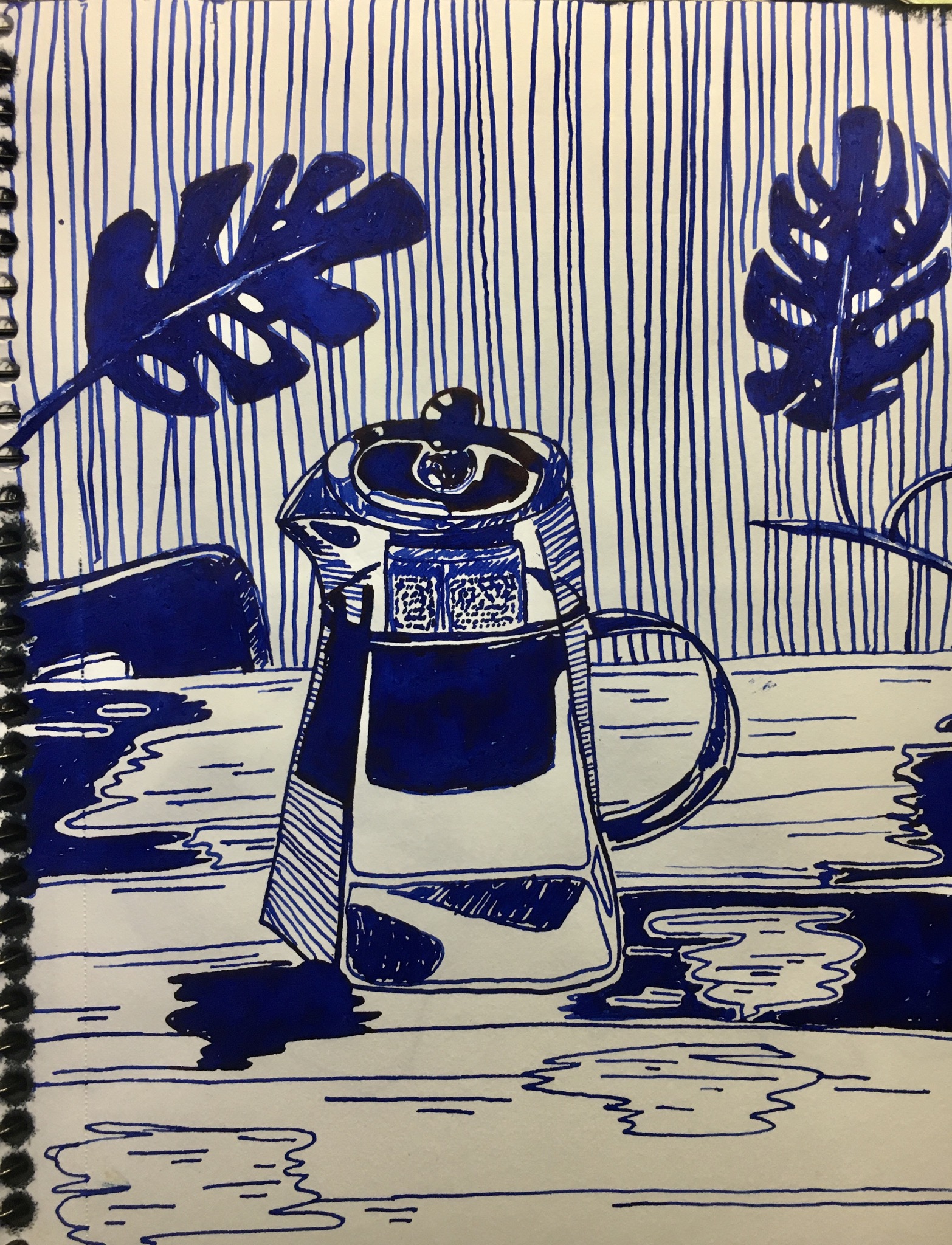 Графический рисунок. Бумага плотная. Размер 16x21 см. Стиль 2D. Техника— тушь (синий цвет). Может быть иллюстрацией для книги или просто отдельным рисунком.