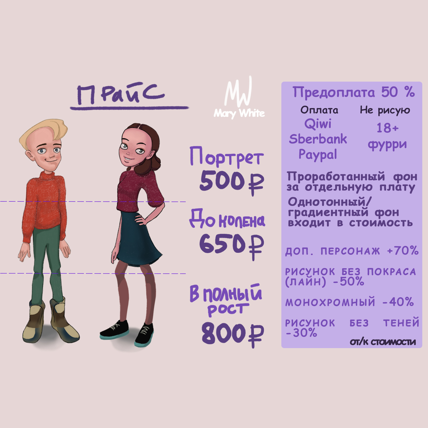 —Если Вы заказываете персонажа (ОС), оригинальный он или свой, в независимости необходимо будет скинуть какие-то изображения либо описать его характеристку и внешность (цвет глаз, волос и т.д)
