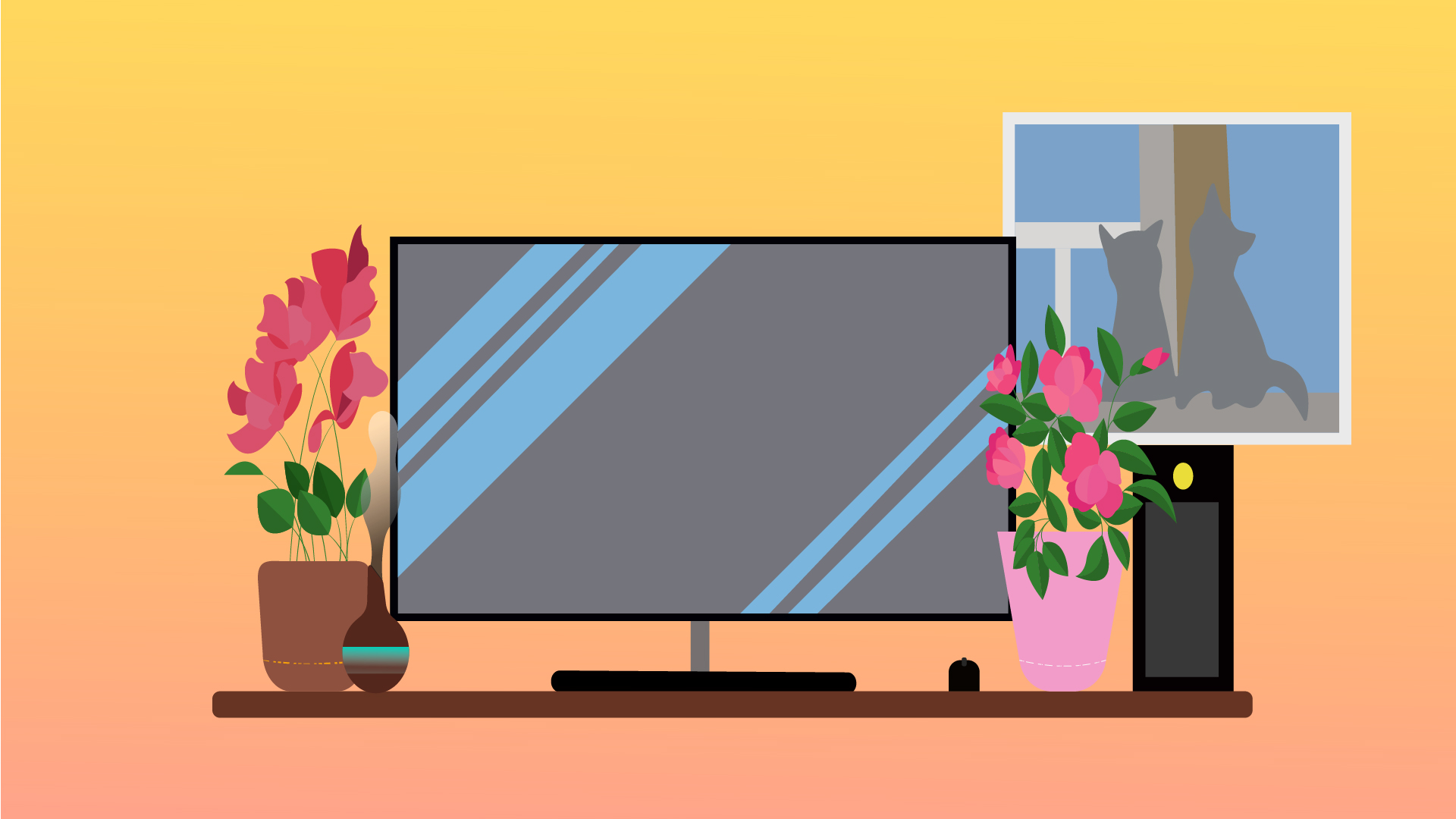 На столе должны быть только те вещи и документы, которые необходимы вам для работы в данный момент. Также для атмосферности можно добавить красивые предметы декора: рамку с фото, цветы.