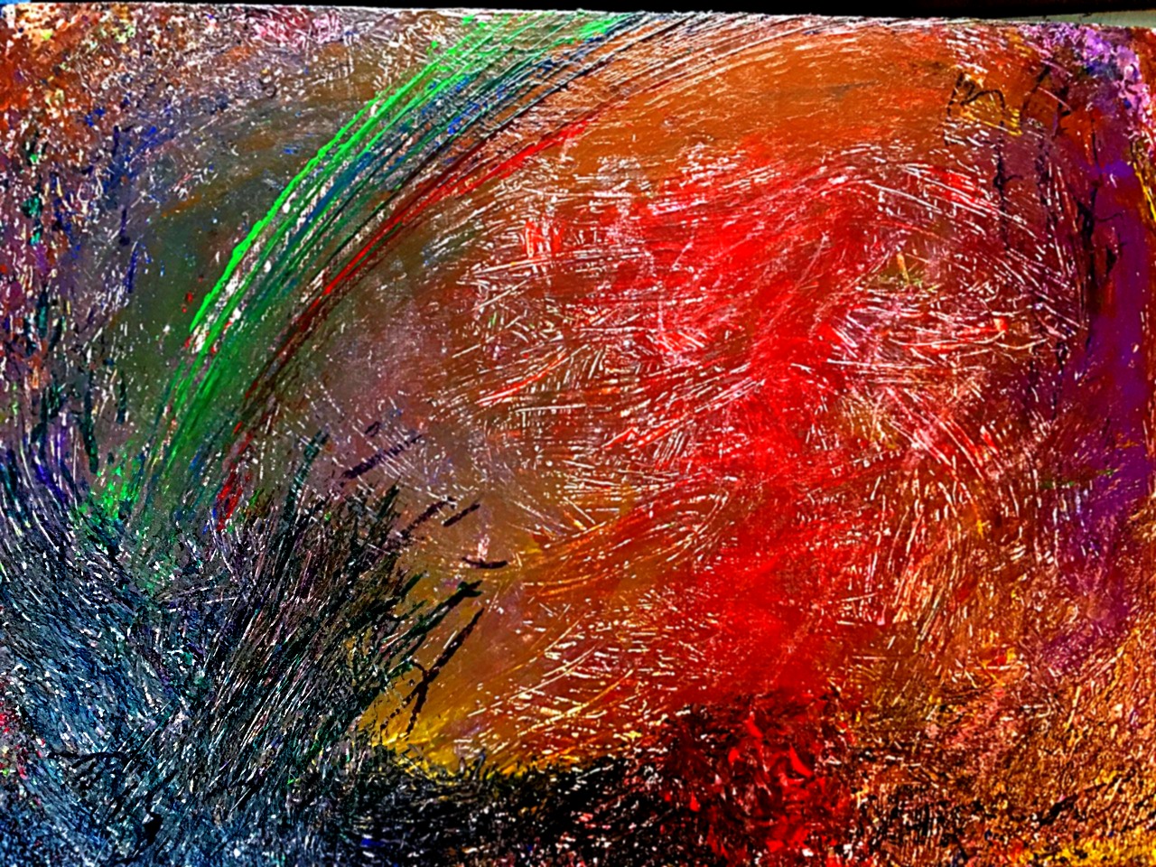 Холст 34,5 х 24 см, Акрил, сам рисунок не такой яркий, как получилось выложить тут, менее контрастный, вдохновлен коррозией и разложением