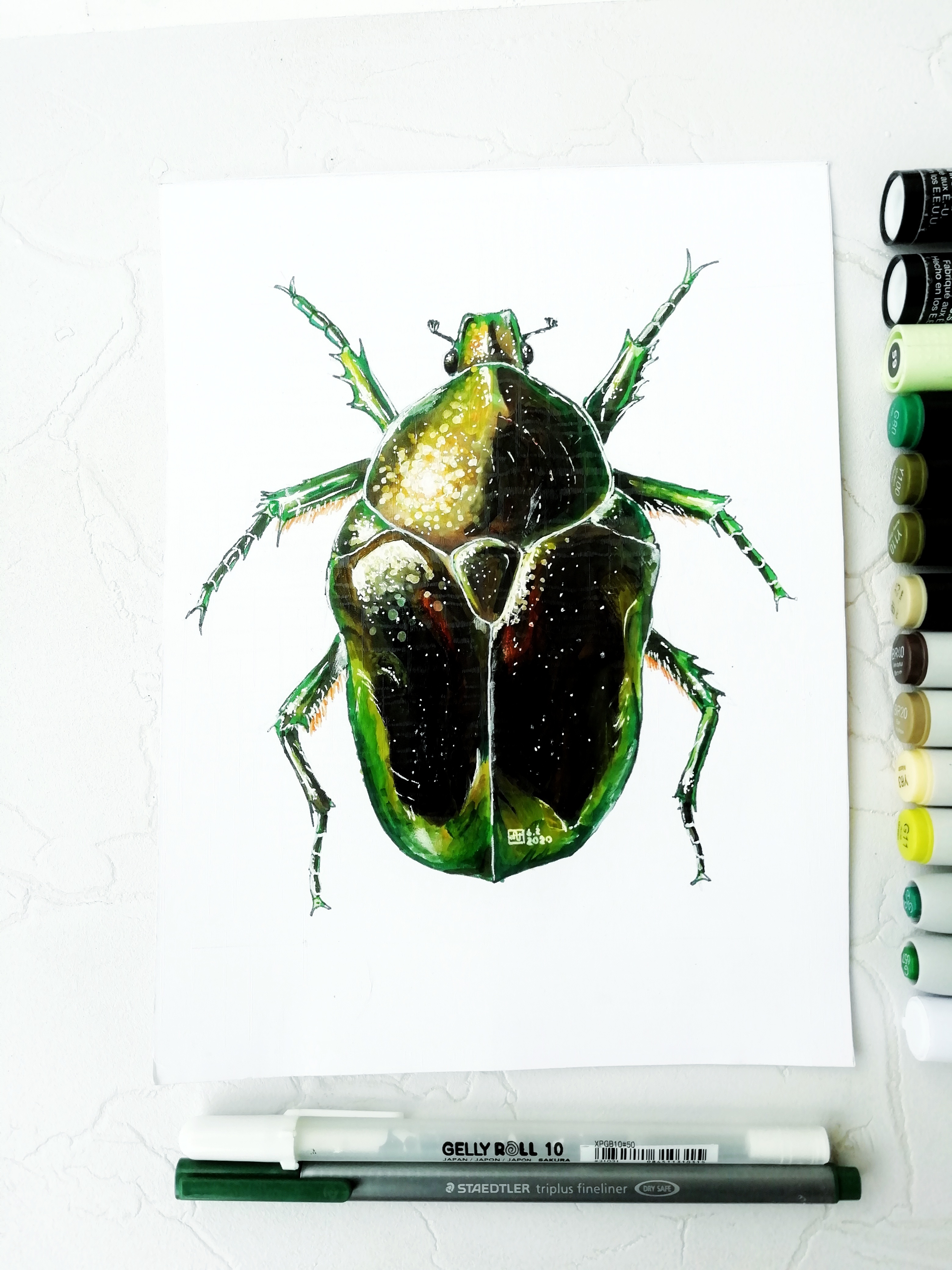 Рисунок жука бронзовки золотистой на листе кардстока формата А5