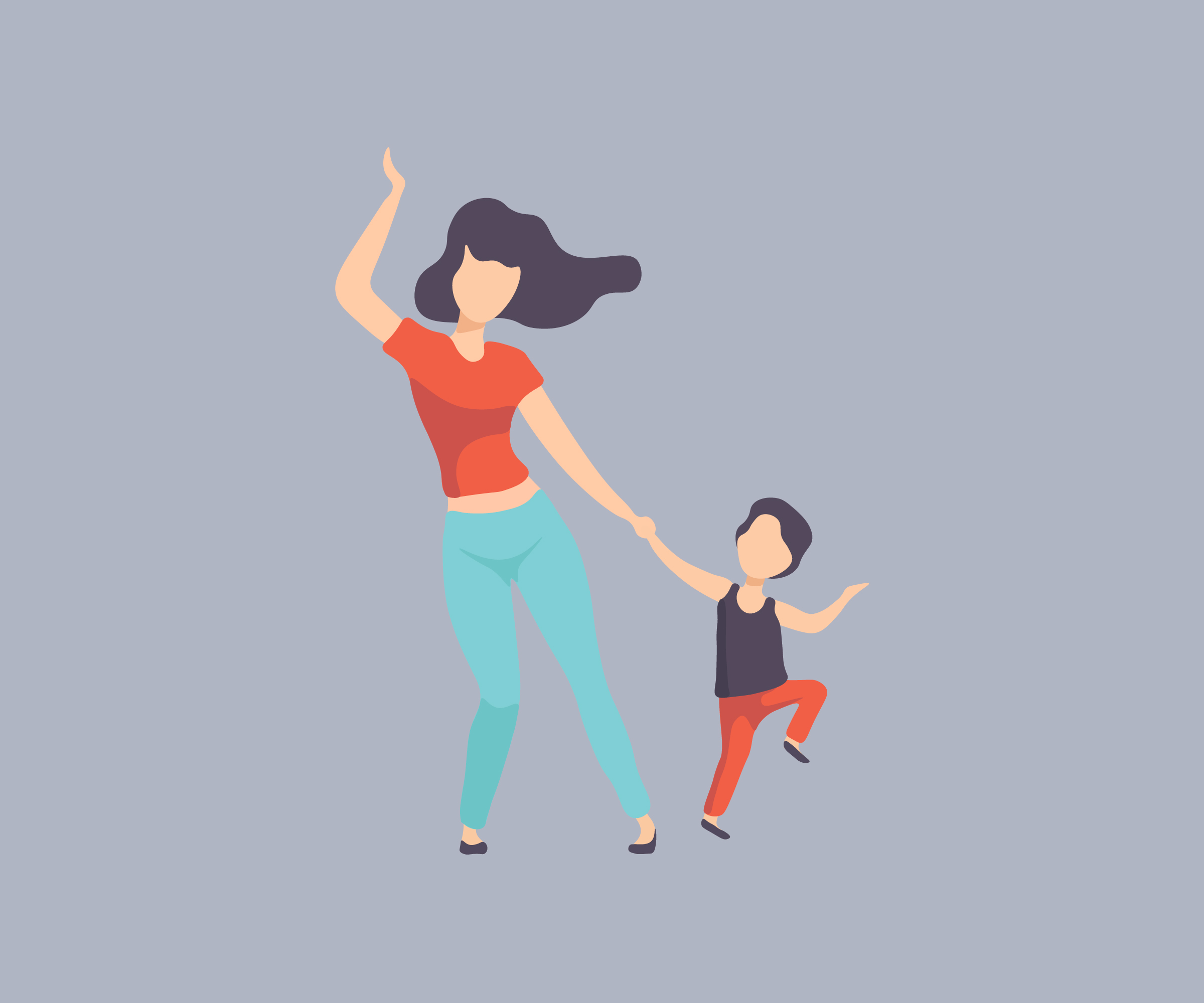 Это иллюстрация, в котором мать и ребенок развлекаются, танцуют и веселятся. Видно материнская любовь к ребенку и ласка, которую дает мама сыну.