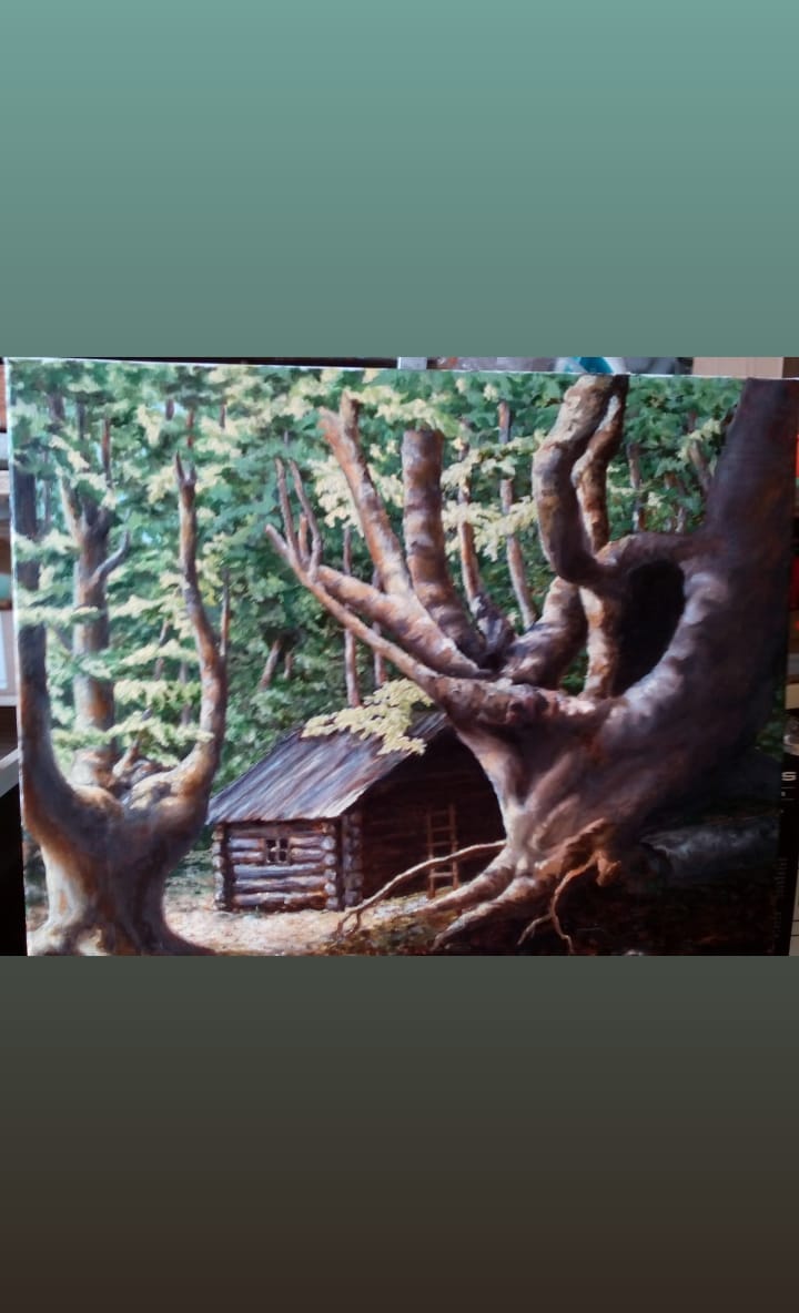 Авторская живописная работа выполнена маслом на холсте. Избушка в крымском лесу. Буковый лес как из сказки придает настроение добра и мира как из детства. Работа продается без багета. потому как для каждого интерьера подбирается индивидуально.
